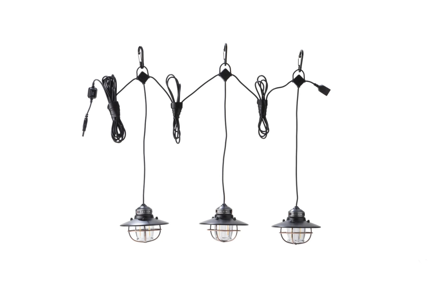 Op zoek naar een lamp voor op de camping of in de tuin? Deze lamp kan binnen en buiten, want hij is waterdicht. Deze lantaarns van Barebones hebben warm witte LED-verlichting van 2700 Kelvin. De lichtstreng heeft een lichtsterkte van 250 Lumen. De lampjes zijn door middel van snoertjes aan elkaar verbonden en kunnen door de karabijnhaken worden opgehangen. Wat een sfeer!