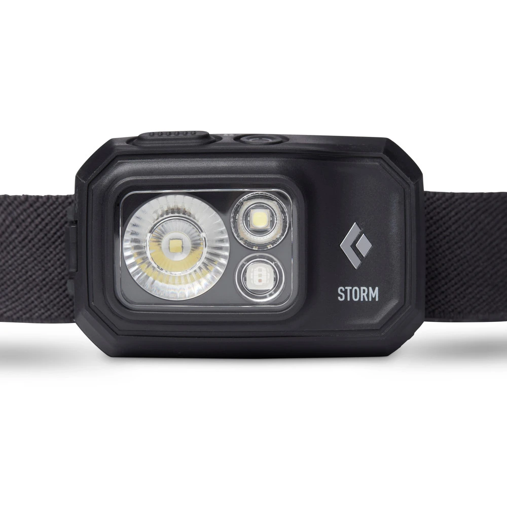 Voor nachtexpedities biedt de Storm 450 verschillende verlichtingsopties, waaronder een perifere witte verlichting voor dichtbij, ideaal voor het organiseren van je uitrusting of het klaarmaken voor een laatste klim in het donker. Daarnaast beschikt de hoofdlamp over drie kleuren nachtvisie namelijk, rood, groen en blauw. Hierdoor blijft je zicht optimaal zonder je ogen te verblinden.
