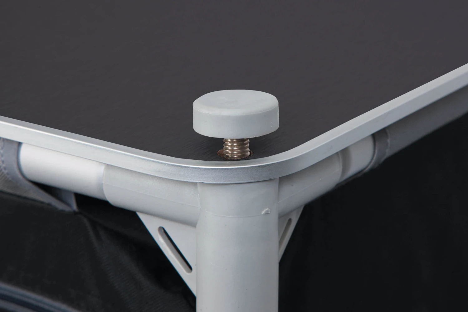 Het waterbestendige werkoppervlak zorgt ervoor dat een onverwachte regenbui je kookplezier niet bederft. Daarnaast heeft het kookeiland voldoende opbergruimte voor al je keukengerei, zodat je altijd georganiseerd blijft, zelfs midden in de natuur. Het stabiele werkoppervlak, gemaakt van stevig aluminium, biedt je de perfecte basis om je kookkunsten te tonen.