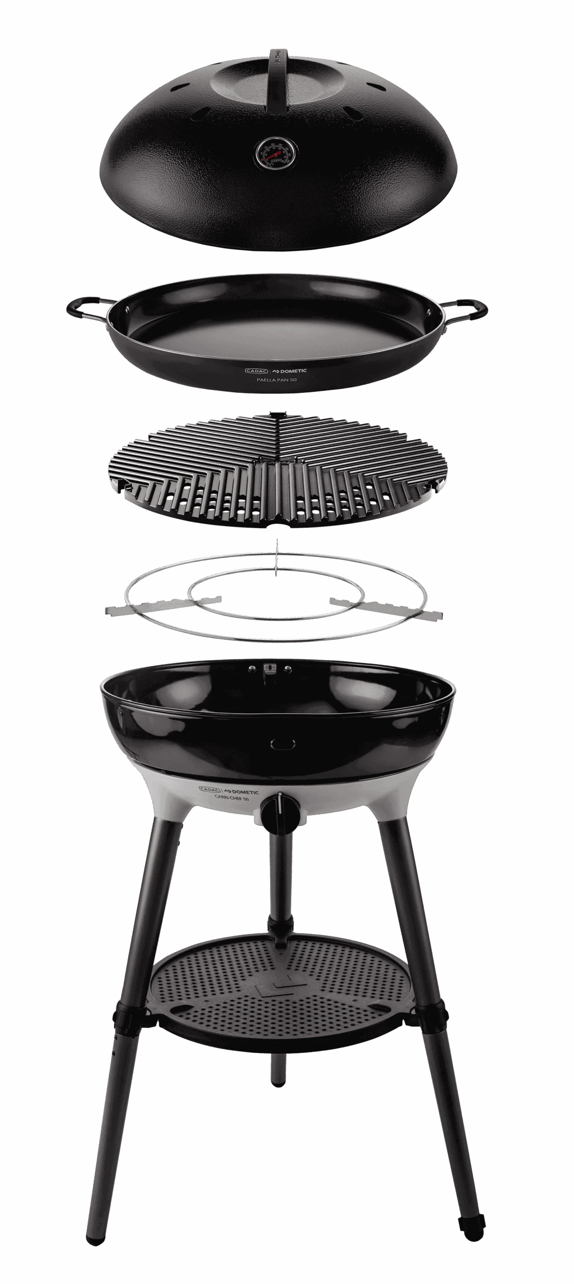 Lichtgewicht paellapan gemaakt van aluminium, voorzien van een duurzame GreenGrill-keramische coating en stevige roestvrijstalen handgrepen. Perfect te gebruiken op de pandrager van je barbecue. Deze pan is uitstekend geschikt voor het bereiden van gerechten voor grotere gezelschappen, zoals paella, risotto, pasta of pannenkoeken. Compatibel met onder andere de CADAC Carri Chef 50, Citi Chef 50, een gasfornuis en een elektrische kookplaat. Inclusief een praktische opbergtas.