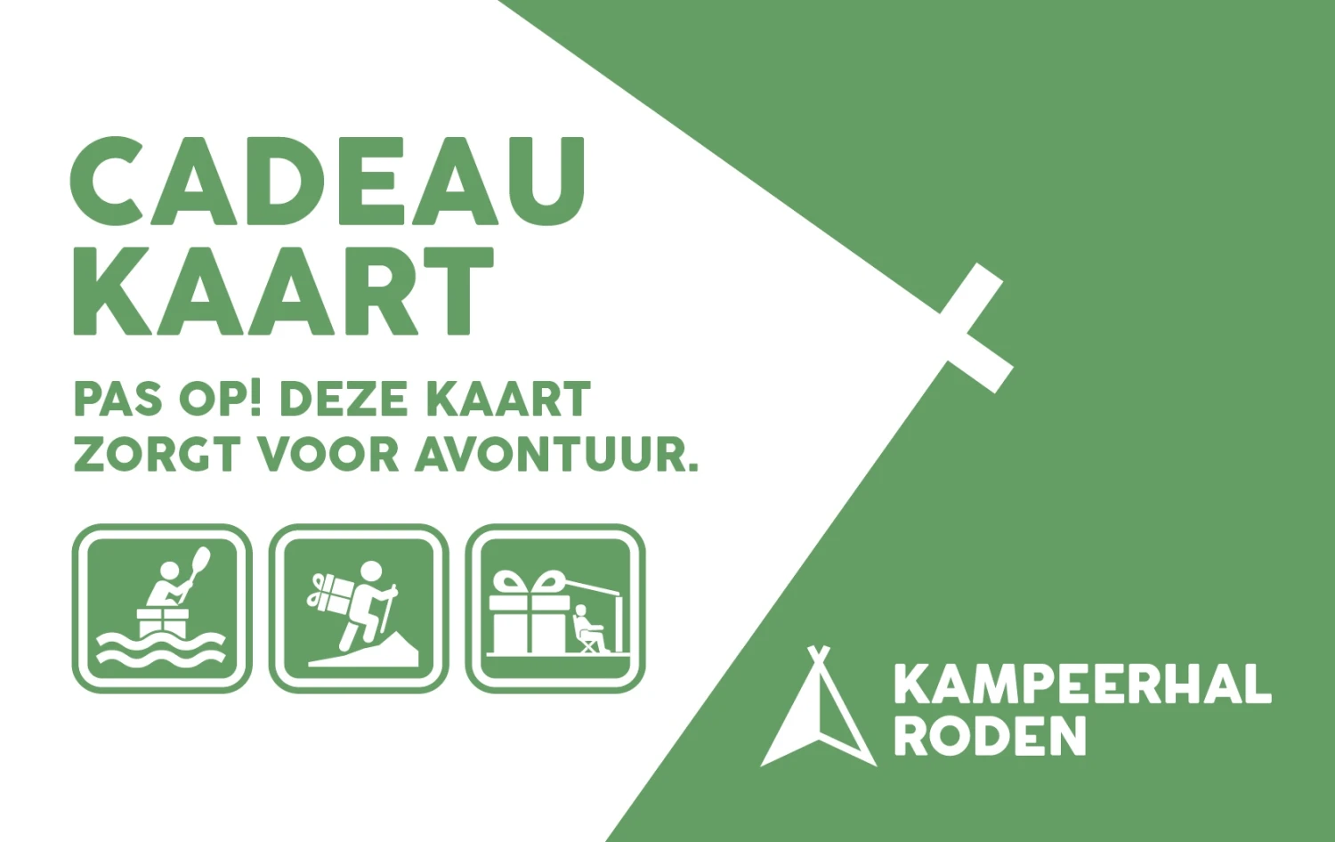 Geef een cadeautje dat altijd goed in de smaak valt! Een Kampeerhal Roden cadeaukaart bevalt altijd! Of je vrienden, familie of geliefden nou houden van kamperen, wandelen of genieten in de tuin. Voor elke outdoor-fanaat hebben wij bij Kampeerhal Roden het perfecte cadeau. Geef deze kaart als cadeau en laat je naasten genieten van een groot assortiment!