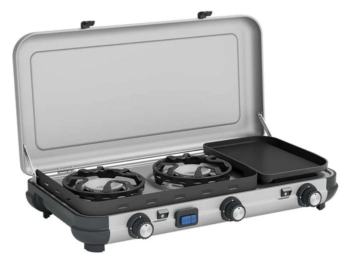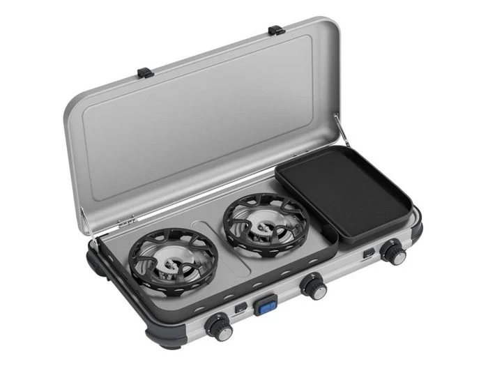 Dit kooktoestel van Campingaz is een uitstekende keuze voor wie graag heerlijke gerechten wil bereiden tijdens het kamperen. Met twee stabiele pannendragers en een gegoten aluminium grillplaat biedt het toestel veel mogelijkheden voor kookplezier in de buitenlucht. De onafhankelijk te gebruiken branders stellen je in staat om gelijktijdig verschillende gerechten te bereiden, wat handig is voor efficiënt koken op de camping.