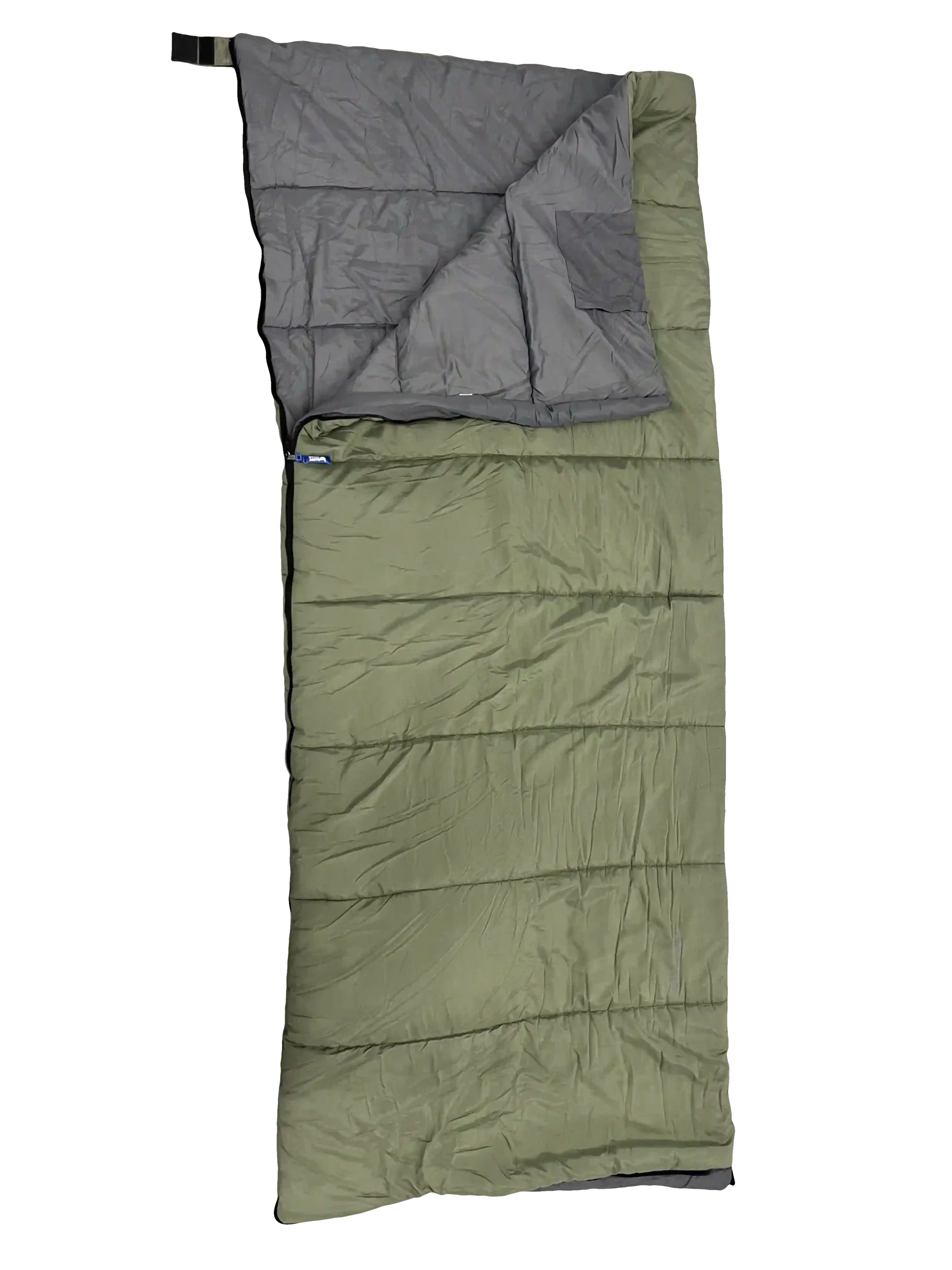 Deze slaapzak is volledig vervaardigd uit polyester, een materiaal dat bekend staat om zijn duurzaamheid en warmte-isolerende eigenschappen. De binnenkant is uitgevoerd in geborsteld polyester, wat de slaapzak een extra zachte touch geeft en zorgt voor een aangename slaapervaring.