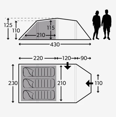 De Kampa Mersea 3 is een van de grotere bijzettenten die op de markt is. Met name de breedte van 230 cm zorgt ervoor dat je een extra grote slaapcabine hebt waar je gemakkelijk met drie personen in kan slapen. Het voorportaal met kuilzeil geeft ruimte om je bagage of andere spullen droog neer te leggen.Â