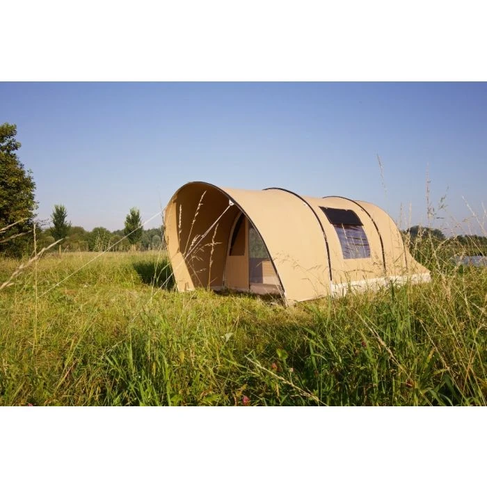 Zoek je ook bescherming tegen zon, wind en regen? De ruime, moderne luifel die je eenvoudig aan de tent rits, biedt voldoende schaduw en beschutting, zodat je onder alle weersomstandigheden comfortabel kunt ontspannen.