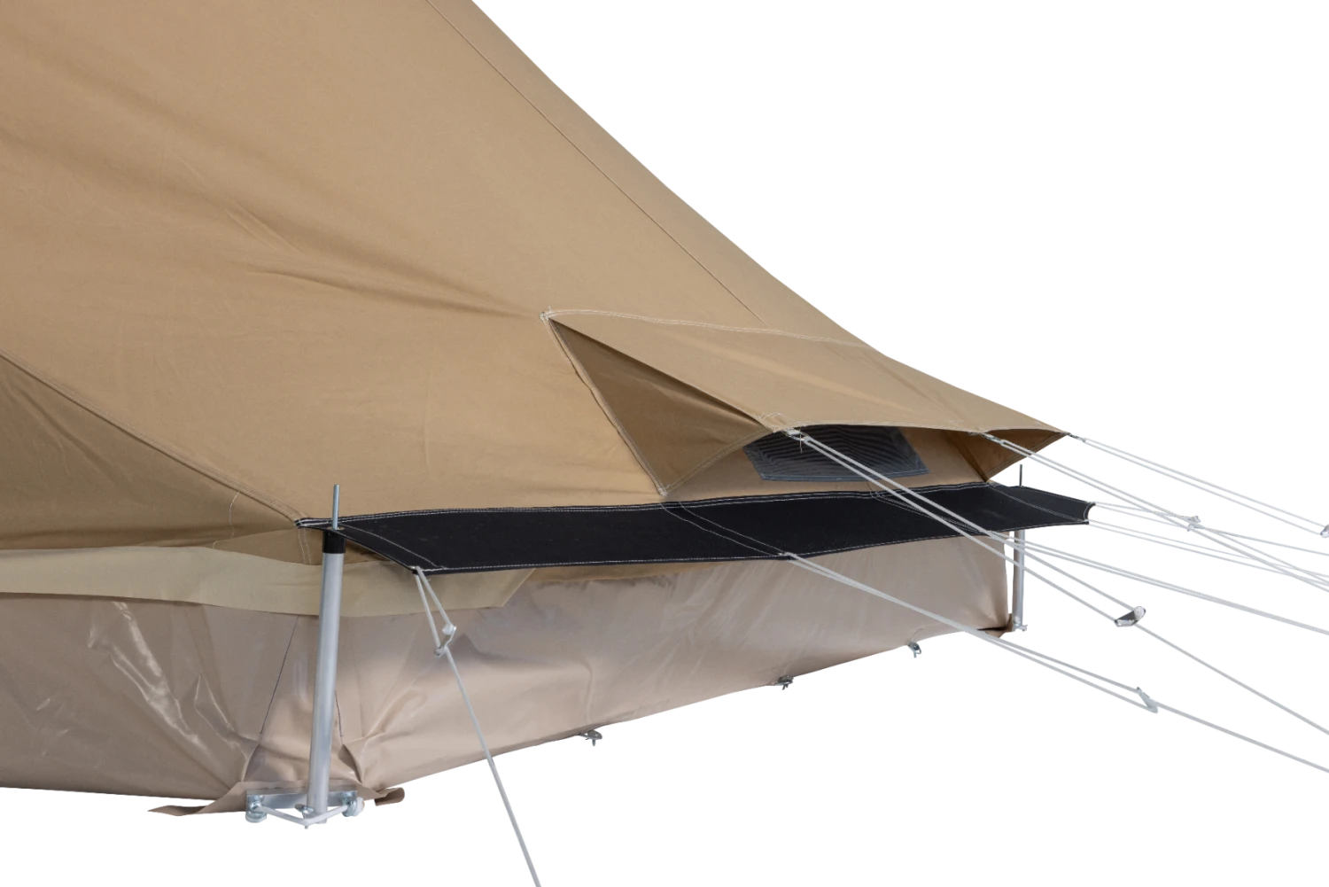 Vraag je je af hoe je het binnenklimaat van je tent aangenaam houdt? Het ademende 100% katoenen Ten Cate tentdoek van de Karsten Opera 2400 zorgt voor een natuurlijke luchtcirculatie. Grote ramen aan beide zijden en voldoende ventilatiepunten zorgen ervoor dat je binnenin de tent altijd geniet van frisse lucht en voldoende daglicht.