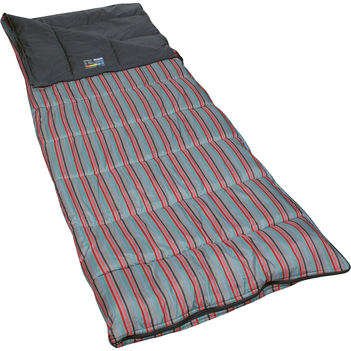 Extra lange en comfortabele slaapzak voor alle seizoenen, in stijlvol antraciet met streepdesign