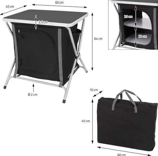 Als je op zoek bent naar een ruimtebesparend wonder dat eenvoudig op te zetten is en beschikt over de kracht van een echte kampeerheld, dan is de Redcliffs Outdoor Campingkast Zwart de perfecte keuze voor jouw volgende buitenexpeditie. Neem hem mee en ervaar zelf het ultieme gemak tijdens je kampeeravonturen!
