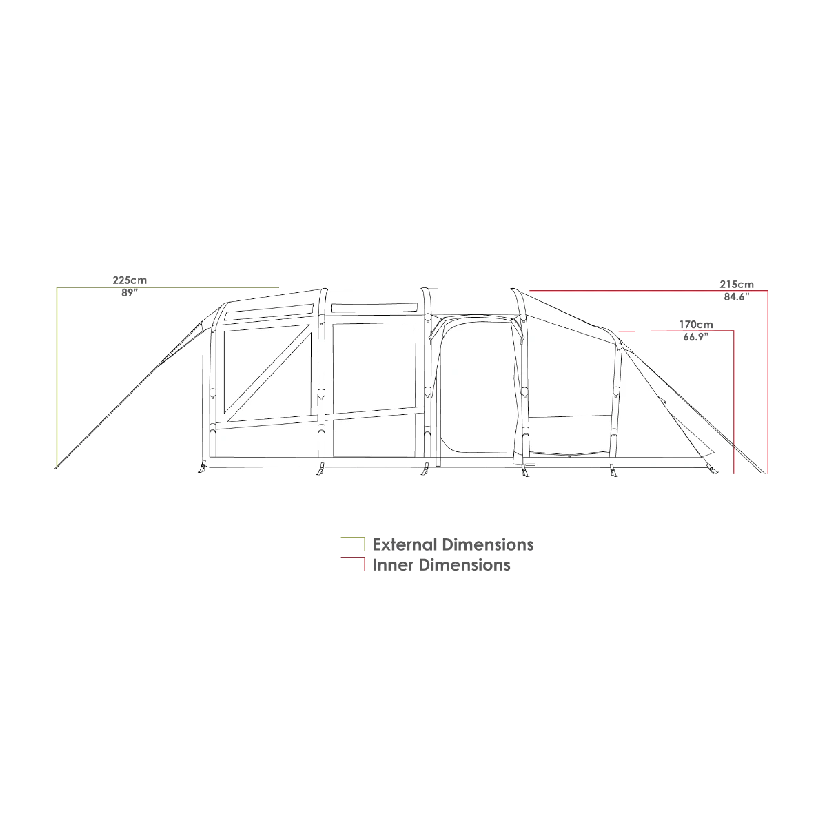 Het opblaasbare luchtframe is eenpuntsinflatie waardoor de installatie eenvoudig is, met een opblaassnelheid van minder dan 3 minuten. De nieuw toegevoegde getinte PVC-dakramen geven meer licht en een gevoel van ruimte in de luchttent met behoud van privacy. De Multi-room binnenkant kan worden geconfigureerd naar uw behoeften met meerdere slaapkamerindelingsopties om uw privacy en opslag te verfijnen. Je zult gegarandeerd genieten van de ruimte en functies in deze grote luchttent terwijl je je een Pro voelt.